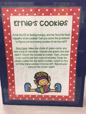 During math, I'll introduce "The Hungry Elf" subtraction game. This game will also become part of our center rotation throughout the rest of December.